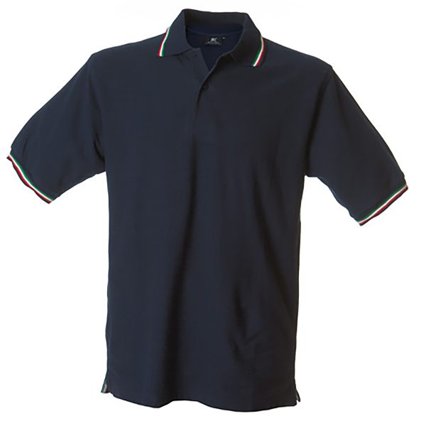 Polo manica corta – 100% cotone piqué pettinato – Doppio piping tricolore su colletto e fondo manica in rib –