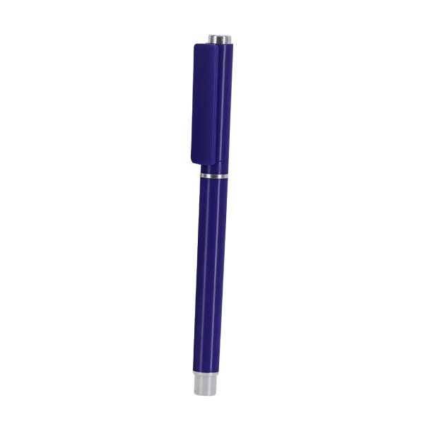 Elegante rullo in ABS riciclato. Dettagli con finitura argento, corpo con finitura massicia. Con cartuccia jumbo, inchiostro blu e chiusura