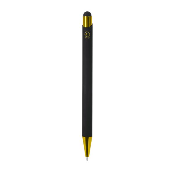 Penna touch con meccanismo a pulsante in colori vivaci e touch abbinato. Finitura in alluminio lucido e inchiostro nero.
