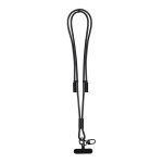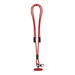 Portaportacordini per mobile con funzione cavo di ricarica, realizzato in una combinazione di poliestere RPET. Include cinghia colorata con moschettone rotante in metallo nero e accessorio di regolazione. Offre funzionalità di upload e trasferimento dati, con input di tipo C e uscite di tipo C.