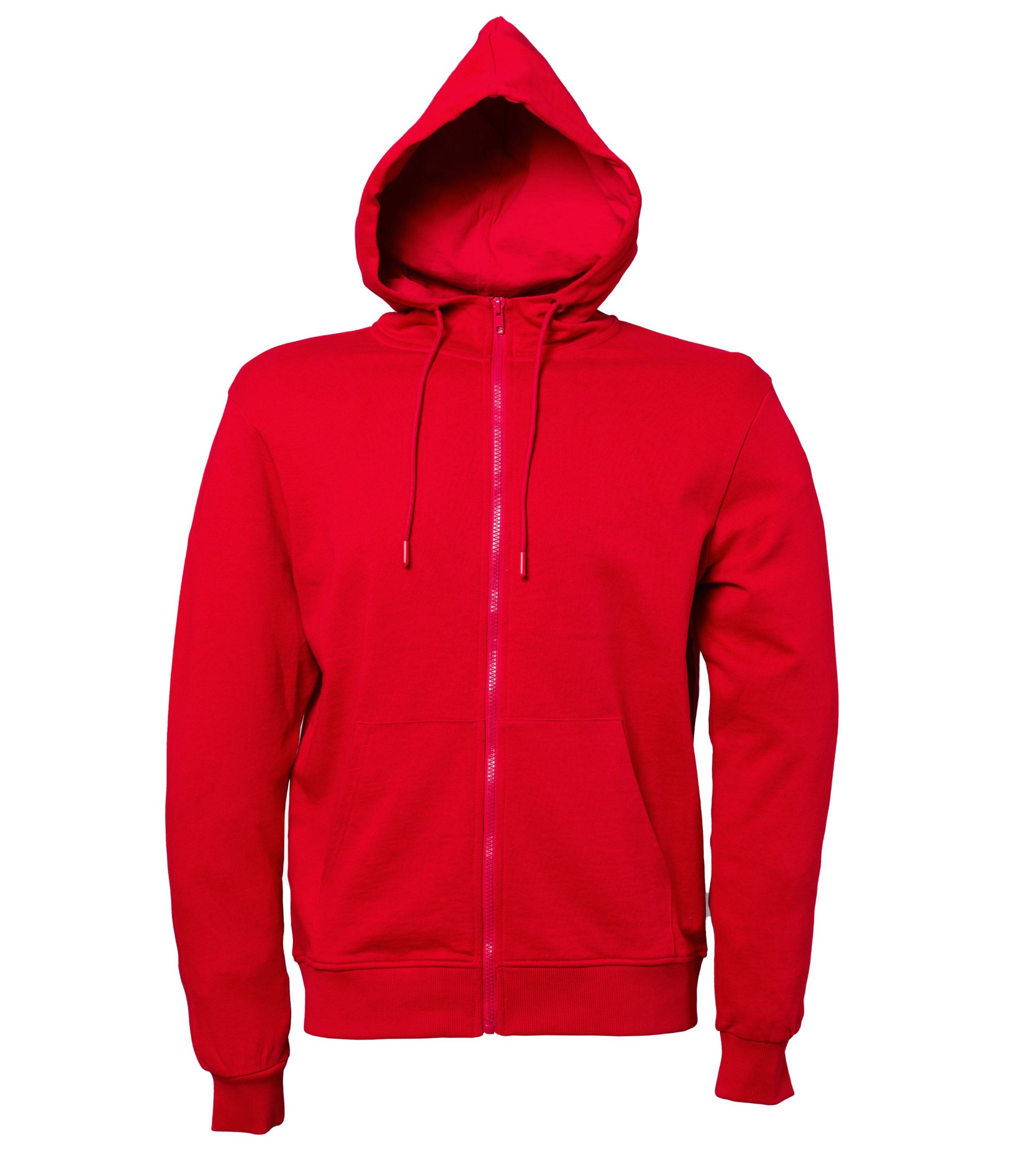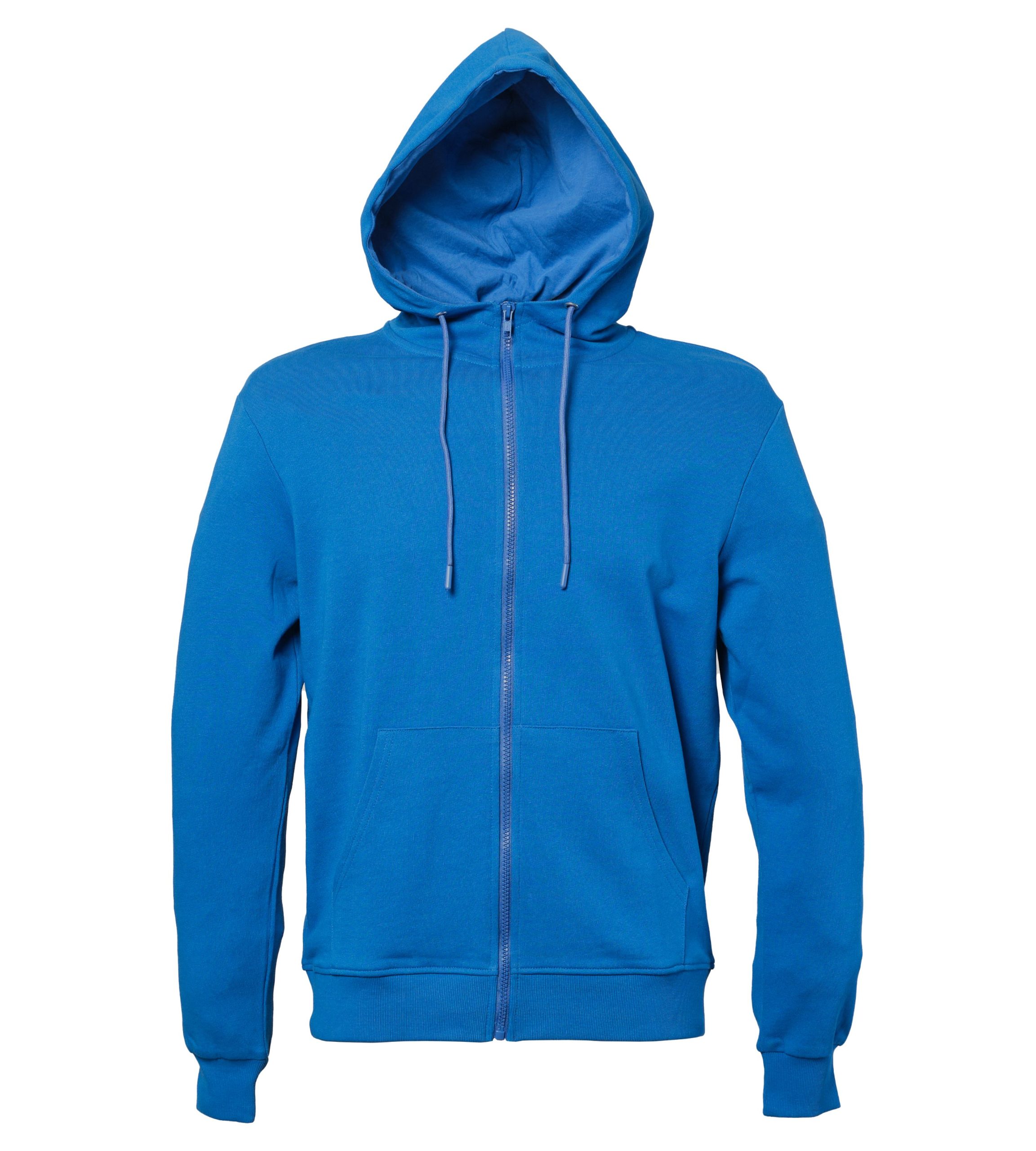 Felpa zip lunga con cappuccio, cordini e stopper in pvc in tinta