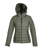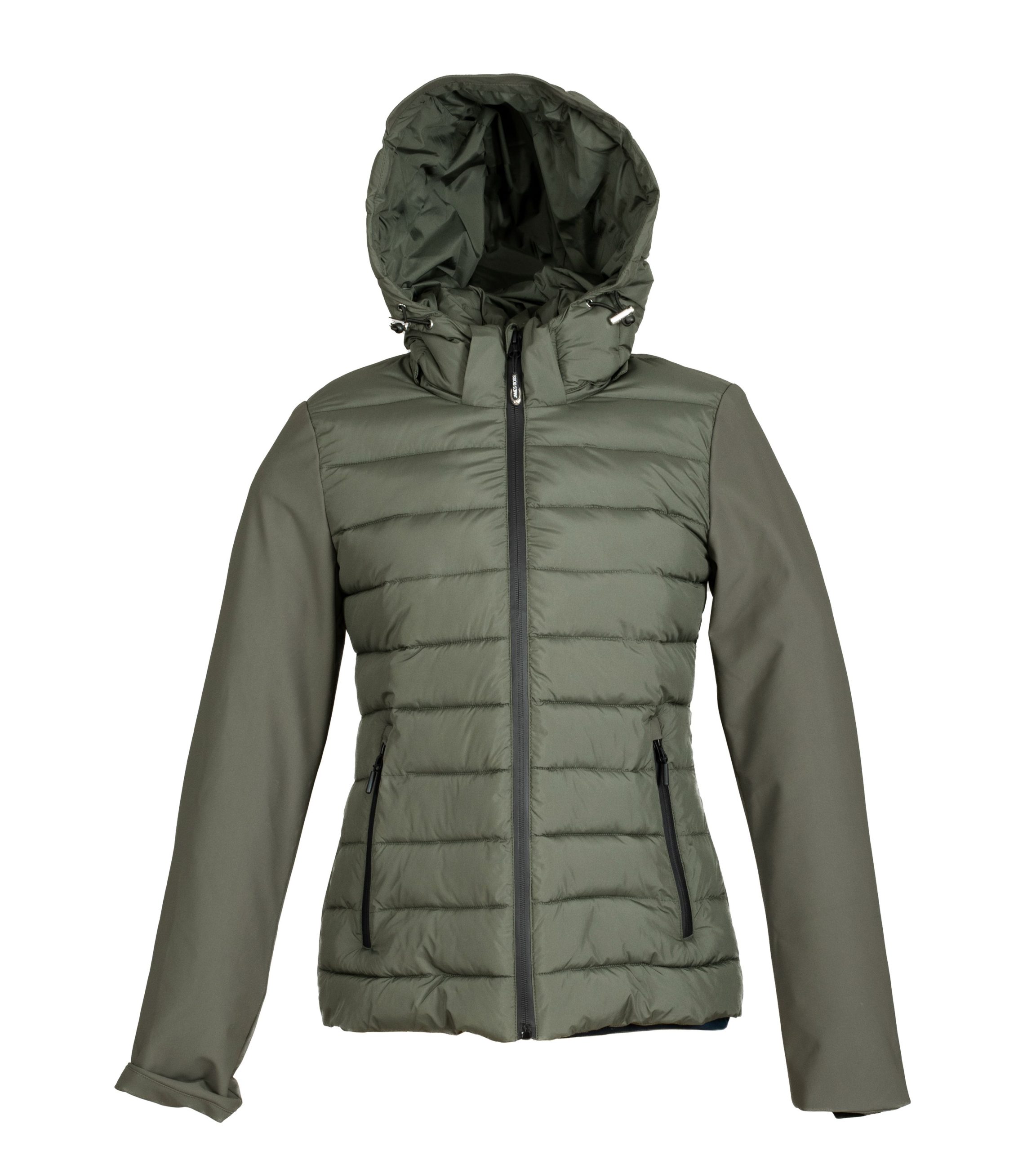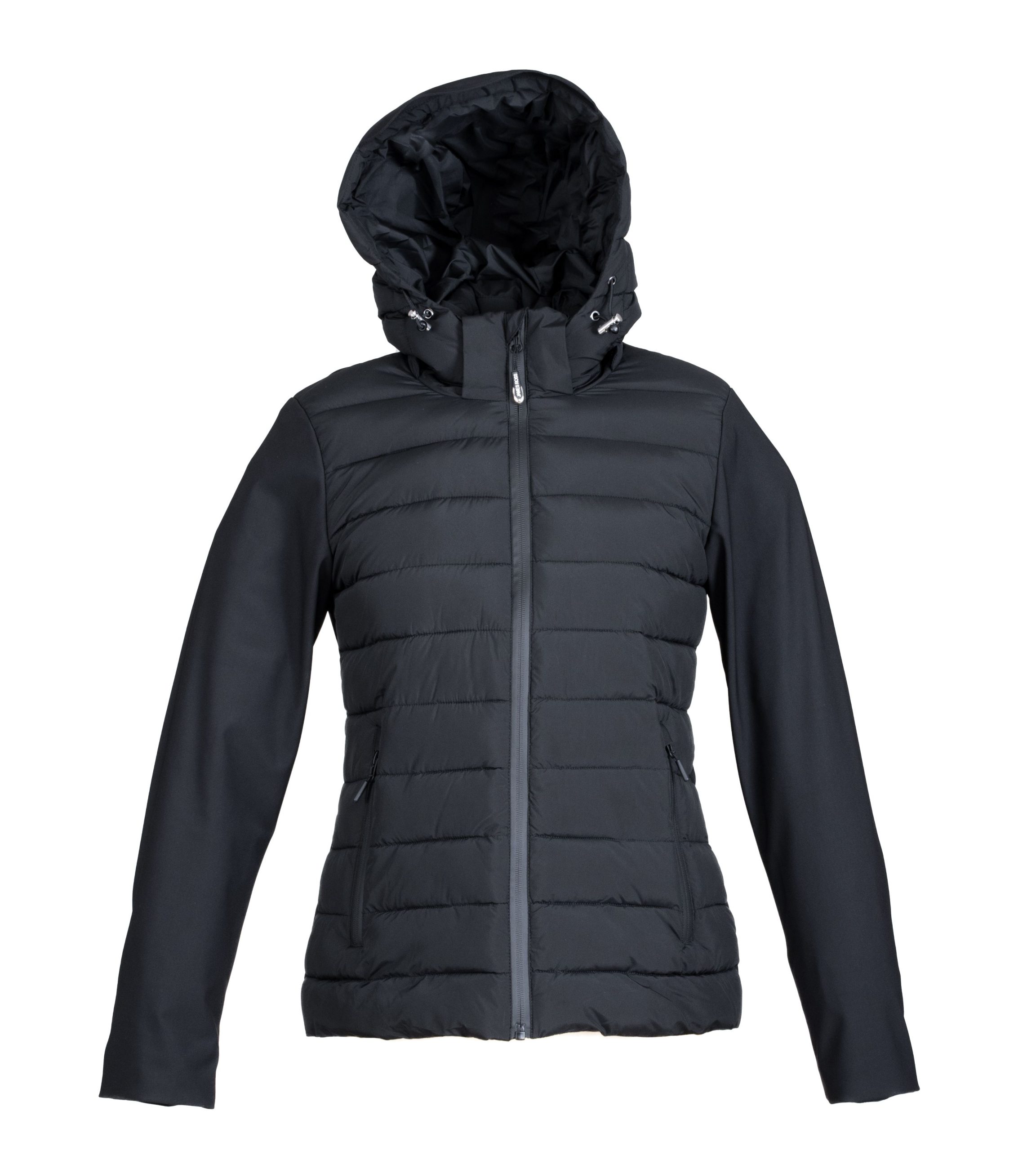 – Parte anteriore e cappuccio in tessuto idrorepellente con imbottitura in soft polyestere (effetto piuma)
