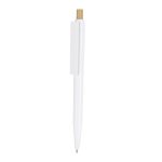 Penna fatta di bambù e ABS. Carrozzeria con finitura bianca. Progettato con un pulsante di bambù. Meccanismo a pulsante. Progettato appositamente per la stampa digitale
