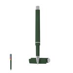 Elegante rullo in ABS riciclato. Dettagli con finitura argento, corpo con finitura massicia. Con cartuccia jumbo, inchiostro blu e chiusura del cappuccio. Include il distintivo RAFS.