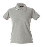 – Doppio piping tricolore su colletto e fondo manica in rib