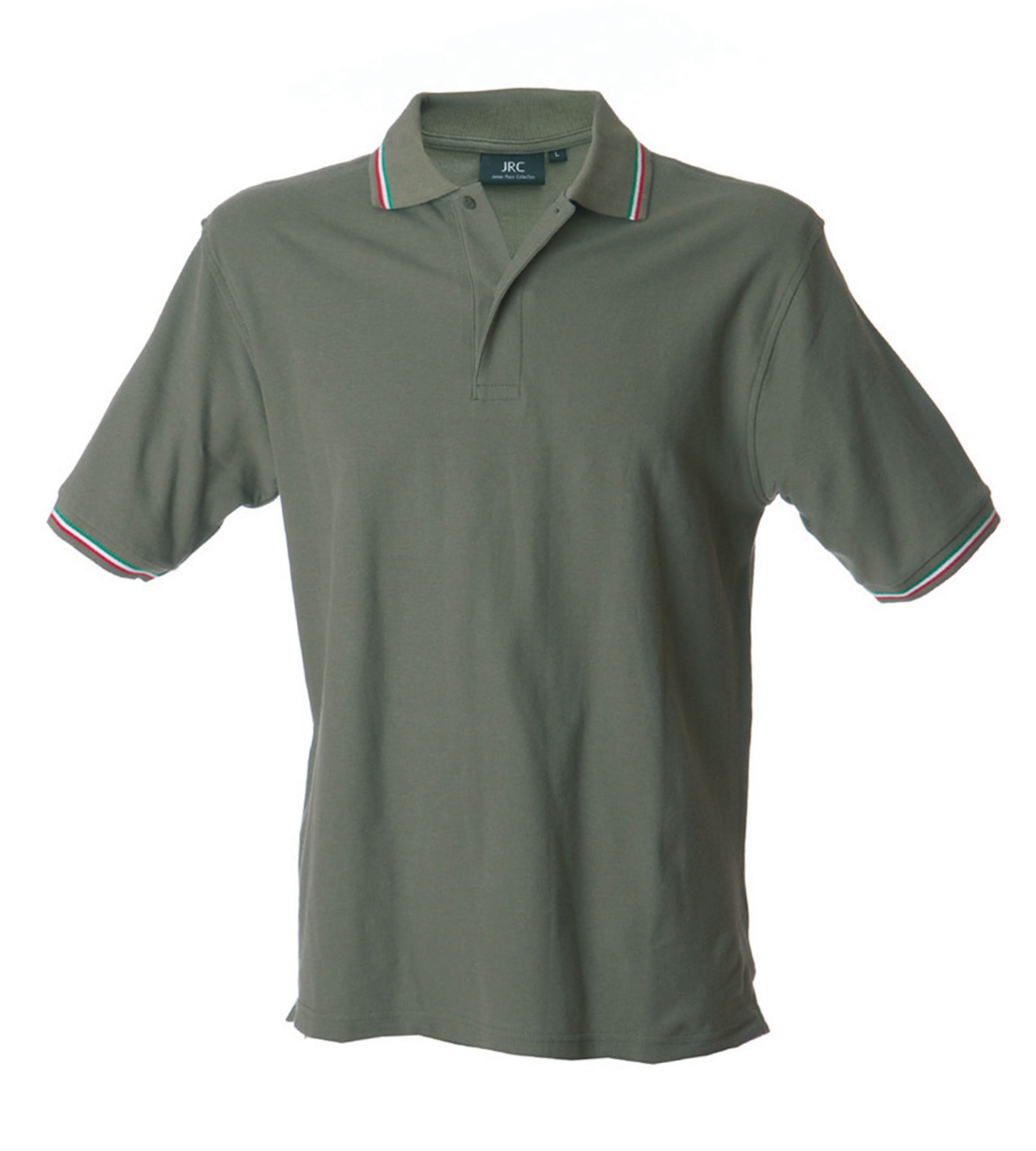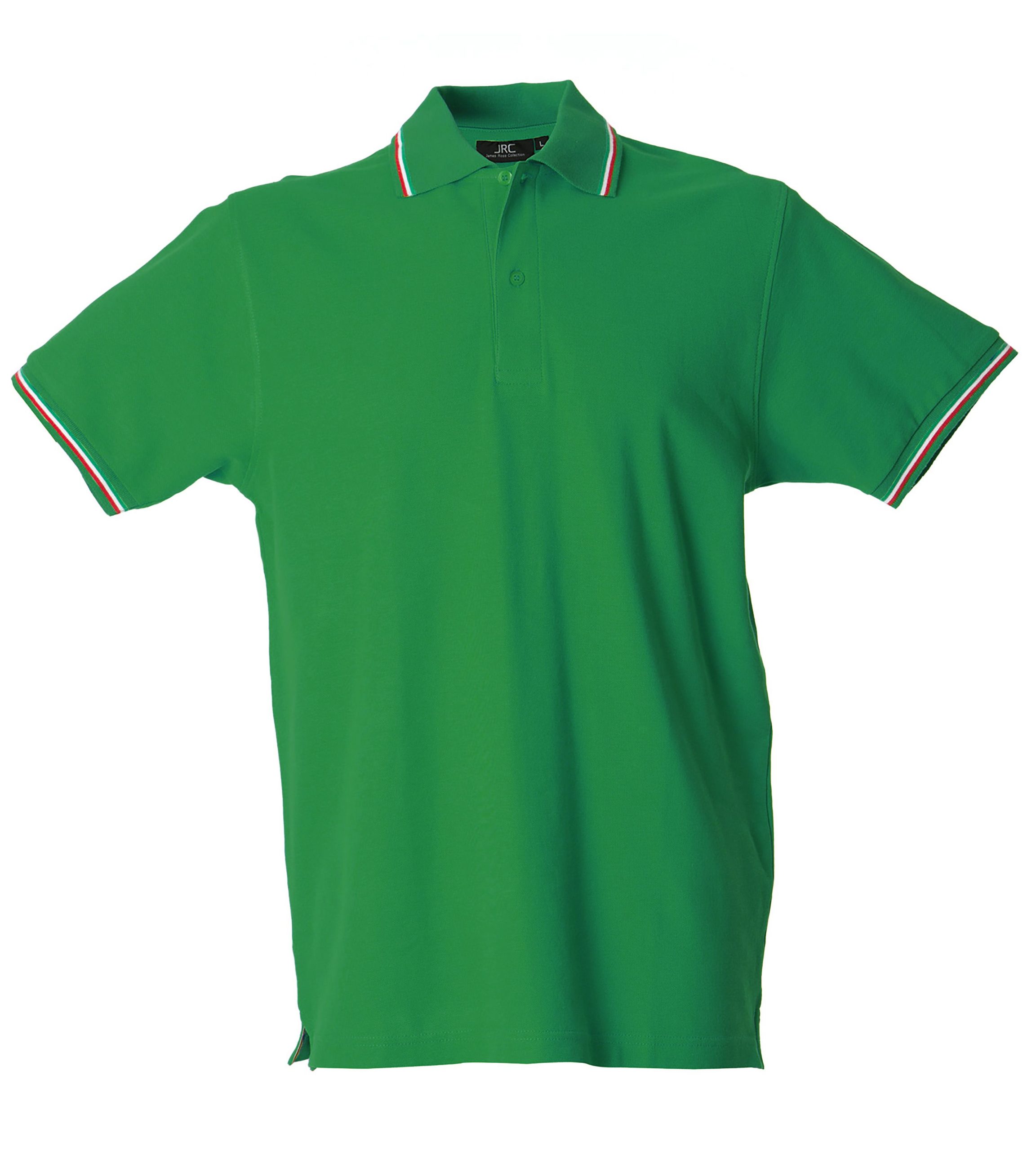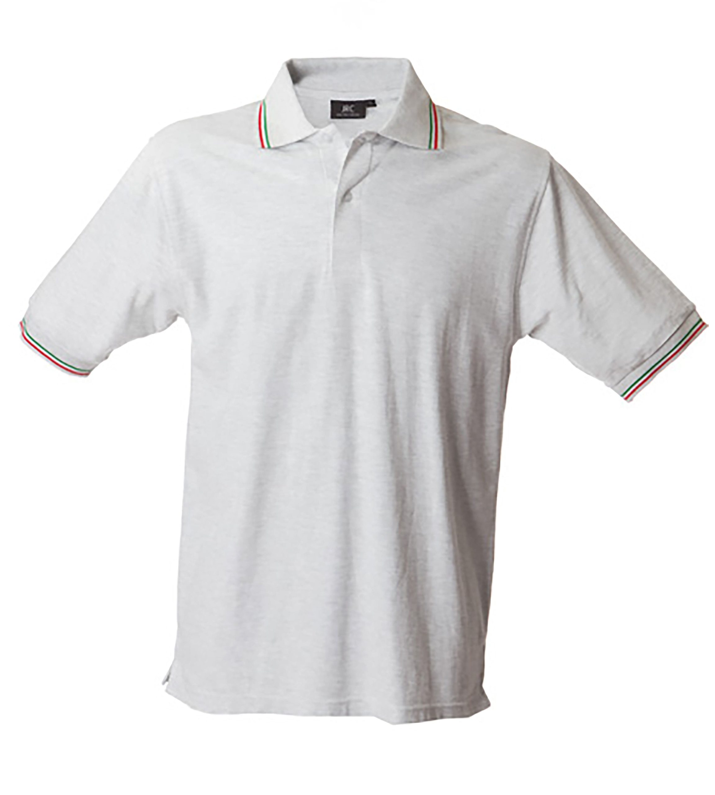 – Doppio piping tricolore su colletto e fondo manica in rib