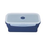 Scatola del pranzo pieghevole con una capacità di 1,2 L. Realizzata in silicone di alta qualità con un coperchio rigido traslucido in PP con blocco di sicurezza. Con un corpo flessibile con finitura opaca, questa scatola per il pranzo può essere piegata per una conservazione comoda e semplice. Senza BPA. Con il logo Food Grade sulla base.