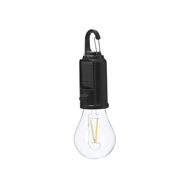 Lampada con design originale della lampadina e corpo in ABS. Batteria da 300 mAh e ricarica solare. Ha un sensore