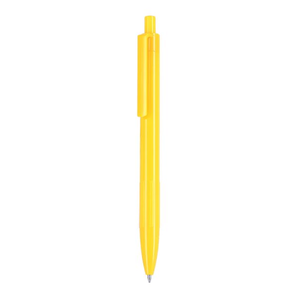 Penna con meccanismo a rotazione, fusto liscio in tinta unita e clip piatta. Inchiostro blu.