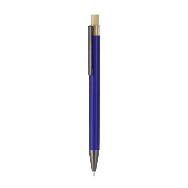 Eleganti penna in bambù e alluminio con meccanismo a pulsante. Robusto fusto in alluminio con finitura lucida e impugnatura in